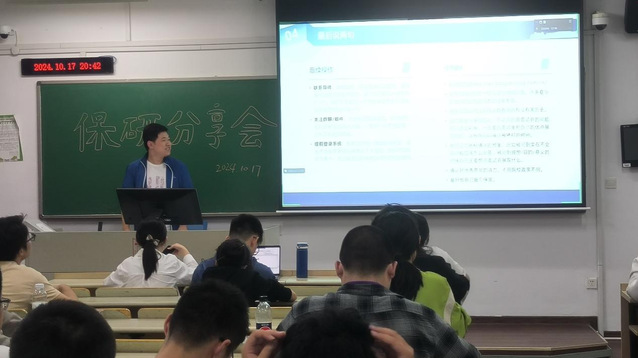 通过吕继宏和葛新宇的介绍,同学们对于各个公司的面试信息、考察重点以及难易程度都有了很好地了解。在讲述中,他们多次提醒同学们多联系专业导师,弄清楚考察重点,保持自信,准备齐全材料。三个小时满满干货的保研分享会不仅为同学们指明了生涯发展的方向,还解答了同学们对于当下和未来的疑惑,鼓舞同学们更有信心地朝目标迈进。
