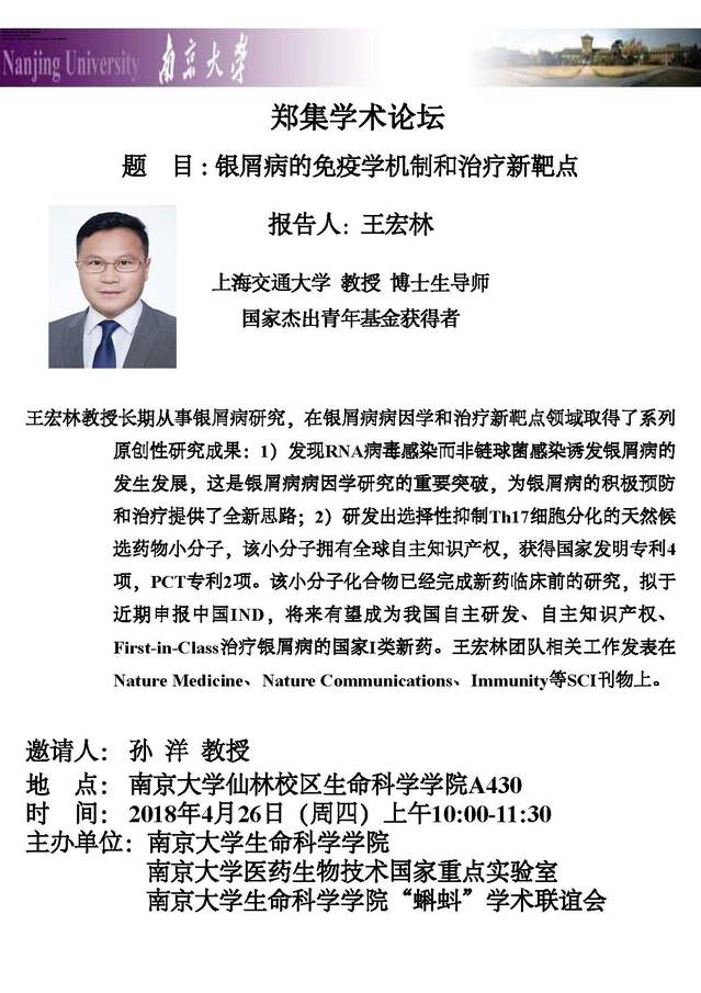 学术报告(4月26日):银屑病的免疫学机制和治疗新靶点
