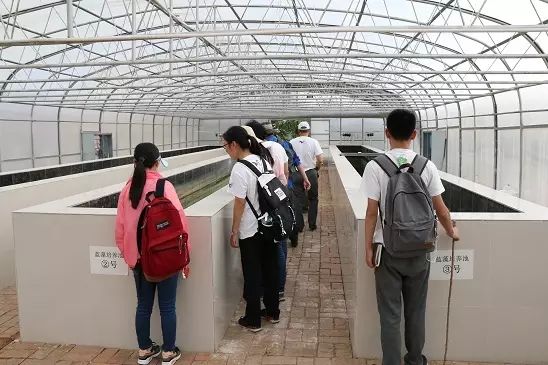 随后,团队前往实验站的户外试验田,实地参观了研究的最新进展。蓝藻,在其他地方臭名昭著,在干旱的沙漠地区却成了宝。蓝藻培养池培养出的蓝藻,覆盖在黄沙之上,可以形成藻结皮,帮助固沙。生物土壤结皮对全球气候变化响应意义重大。研究实验观测地、水分平衡观测场、蓝藻培养池,完备的实验设备展示着沙坡头研究所非凡的科研实力。