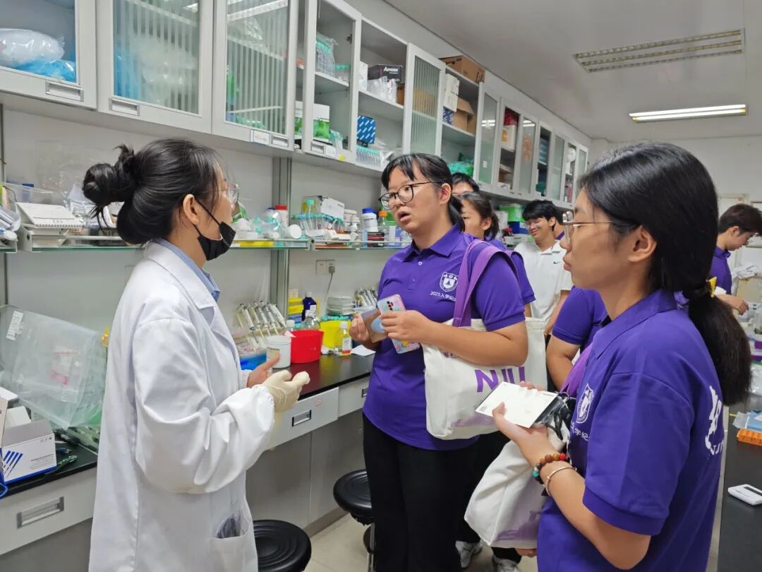 随后,在学长学姐的带领下,新生们分成多个小组,有序实地参观实验室,近距离接触不同研究方向的科研设备与实验场景。参观过程中,学长学姐一一耐心解答新生提问,同时分享自己的科研经历和学习心得。不少新生表示,通过这次参观,不仅对生命科学的研究方向有了更直观的认识,更被科研工作者严谨认真的态度所感染,也更加坚定了自己在这个领域深耕的决心。