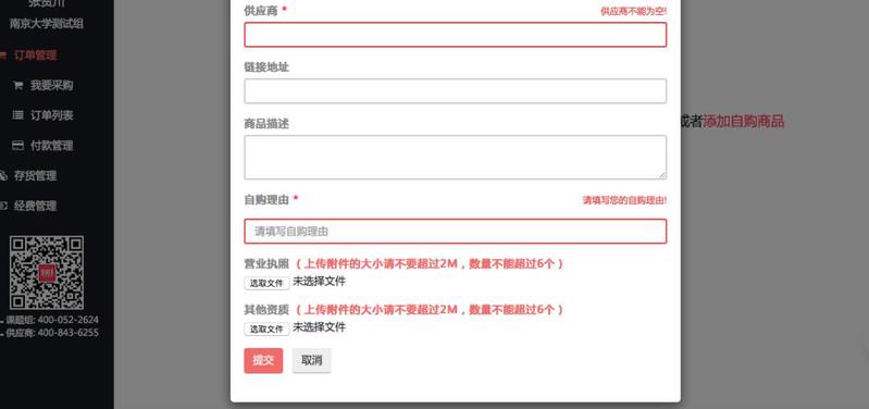 2.1 申请备案:如在系统外的供应商采购,须添加自购申请备案,经过院系审核后才可报销。