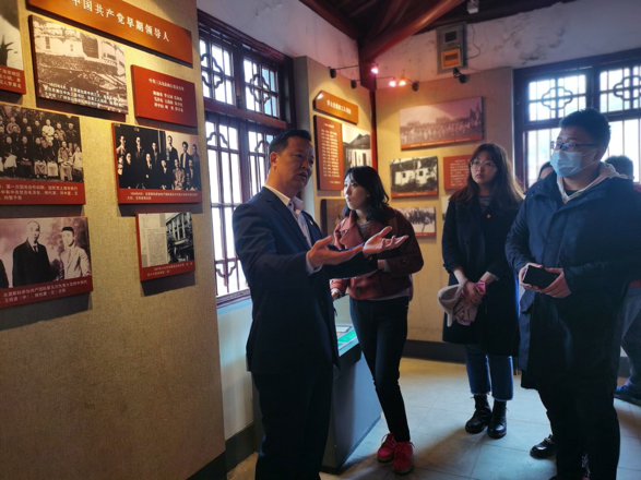 同学们首先来到位于江北新区顶山街道的南京工运纪念馆,这里是两浦铁路工人“二七”大罢工指挥所旧址,也是南京地区第一个中共组织浦镇党小组的主要活动地。中车南京浦镇车辆有限公司企业文化工作室主任王绍礼现场讲解了南京工人运动的历史以及王荷波同志带领工人反抗压迫、积极斗争的英勇事迹,为同学们还原了王荷波同志从一位勇于反抗的工人领袖成长为一名坚定果敢的革命家和共产党员的历程。