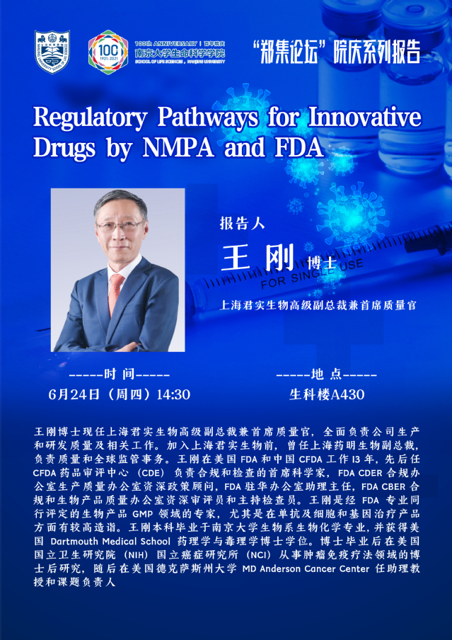 百年院庆系列讲座之郑集论坛(二):Regulatory Pathways for Innovative Drugs by NMPA and FDA