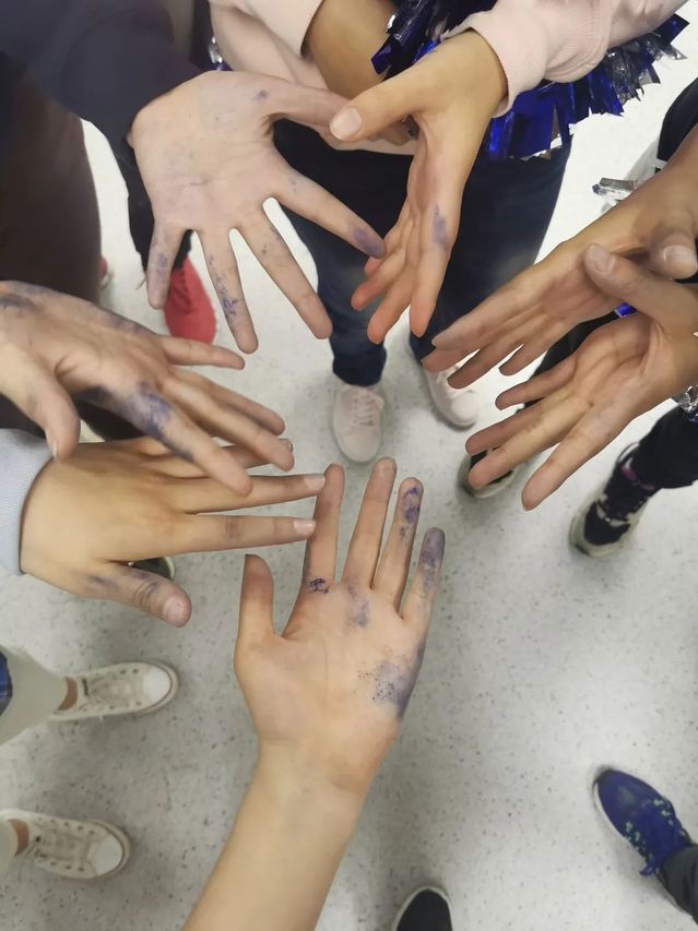 这个来之不易的三等奖也是对大家大半个月来坚持训练的肯定。尽管有繁忙的学业任务和临近期中的巨大压力,大家还是咬牙压缩了本来不多的课余时间,每晚8:30如约在院楼二层的大标本室集中开展排练。因为长时间握举花球,队员手掌被涂料染成了蓝色,但是在短暂的吐槽之后,大家都会快速再次进入状态,跟着'Now that I've become who I really am'的歌声继续练习,如此坚持到比赛日。