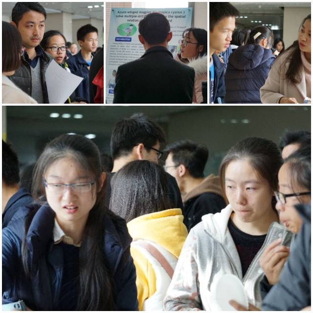 同学们都非常积极地参与到活动中,认真倾听学长学姐的科研进展,提出了自己或稚嫩或成熟的见解与问题。现场的导师学术大牛们更是亲身参与其中,与现场的同学进行学术科研上的交流探讨,并给出了自己的建议,氛围十分热烈。