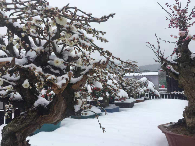 周斌芳先生从美轮美奂的盆景入手,鉴赏了在香雪海举办的梅花盆景展(2009-2021)、2020年中国梅花展、2021年姑苏问梅展等参展作品。1990年代,他以火棘、常春藤和梅花为突破口,成功探索了盆景精品化、商品化、市场化与艺术化的发展道路。借鉴岭南派技术和日本盆景造型,汲取中国山水画营养,他大胆创新了盆景形态,造型简洁,意境深远,线条流畅美观,上下粗细过渡均匀,让苏派盆景之风吹向全国。