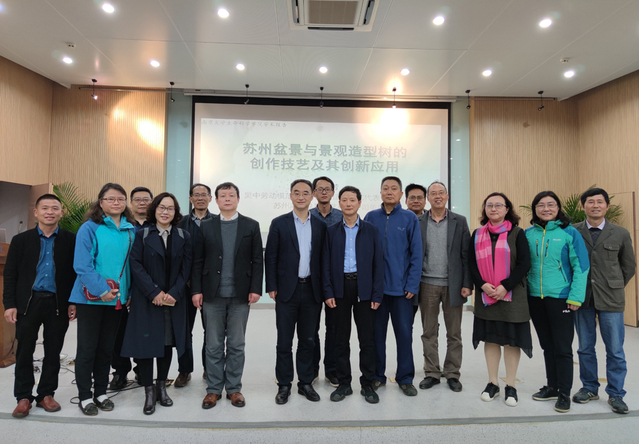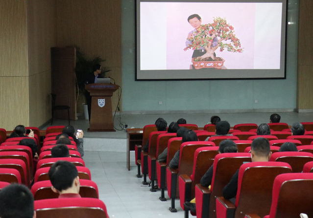 2021年4月25日,吴中劳动模范、苏州盆景造型技艺传承人周斌芳董事长在南京老员工科院报告厅,应邀为广大师生做了“苏州盆景与景观造型树的创作技艺及其创新应用”的学术报告,同时也是公司公共选修课《花卉园艺产业化》的企业家专题讲座。报告会由公司党委书记纪勇主持,著名梅花专家王保忠介绍周斌芳学术成就。