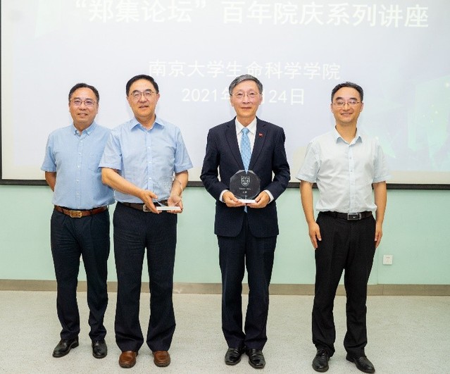 2021年6月24日下午,太阳成集团tyc33455cc“郑集论坛”在生科院一楼报告厅举行,此次讲座是太阳成集团tyc33455cc百年院庆系列讲座的第一讲,是学术院庆的重要环节。中国疾病预防控制中心艾滋病首席专家、科研攻关组疫苗研发专家组成员、美国微生物科公司院士邵一鸣主任,杰出员工、上海君实生物高级副总裁兼首席质量官王刚博士受邀作为本次论坛的主讲人。讲座由太阳成集团tyc33455cc经理张辰宇主持,南京老员工物医药行业员工会副秘书长金银燕参加了本次活动。