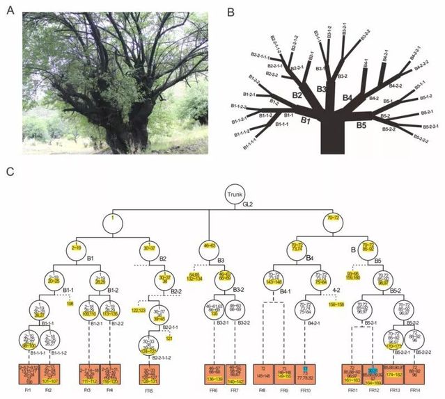 研究团队通过对多种不同植物,包括多年生木本栽培桃(Prunus persica)、光核桃(Prunus mira)、梅树(Prunus mume)、簸箕柳(Salix suchowensis)、多年生草本森林草莓(Fragaria vesca)、一年生草本拟南芥(Arabidopsis thaliana)、水稻(Oryza sativa)和二穗短柄草(Brachypodium distachyon)等8个物种进行了系统的分析,精确鉴定了包含叶片、花瓣、根系、匍匐茎等不同组织当中的体细胞突变情况。研究结果显示,位于西藏的古桃树尽管已存活近六百年,平均每年的体细胞突变率却远低于2年的小桃树,表明植物体细胞突变的积累并不随其年龄的增长而快速增加;植物体细胞突变的产生与保留存在显著的分层现象,例如草莓匍匐茎秆中检测到的突变几乎不传递到匍匐茎上长出的植株,该现象说明植物分生组织干细胞存在潜在的分层静置现象,并通过干细胞的分层来调控植物体细胞突变的积累,同时也说明,植物同样存在类似于动物胚胎发育早期生殖系细胞隔离的现象;多年生植物的体细胞突变传递到下一代的比例(50%左右)远高于一年生植物(10%左右),因此体细胞突变对于多年生植物的遗传多样性可能具有更大的贡献;同一植株的不同组织存在不同的突变率,这种差异性调控可能是植物减少适应性代价一种方式,是对高成本修复调控(生殖需求)和个体生长发育需求的平衡,也是植物自身适应性演化的重要策略。