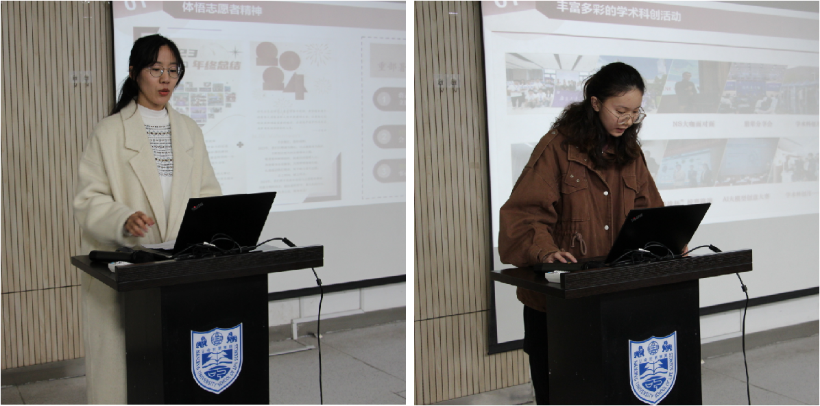 校团委志愿服务部韩荃同学从体悟志愿者精神、健全志愿者平台和服务挑战杯赛事三个方面展开志愿服务工作宣介,并分享了各类志愿活动参与渠道,鼓励同学们在志愿服务中提升自我、奉献青春;最后,校团委学术与“双创”部许诺同学围绕为什么要参加“挑战杯”、“挑战杯”竞赛攻略等方面进行分享,鼓励大家发挥主场优势,踊跃参加第十九届“挑战杯”全国老员工课外学术科技作品竞赛,并预祝取得优异成绩。