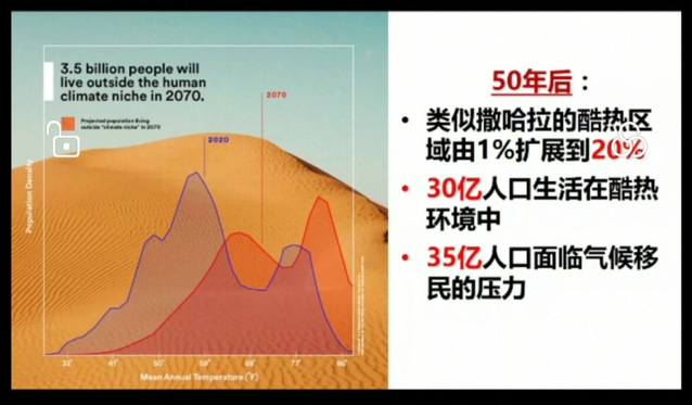 其次,徐教授结合自己的研究过程与研究成果深度地探讨了全球的气候变化与未来的发展趋势以及对人类和生物生存的影响,两分钟的精彩短片直观对比了2020年与2070年的气候变化情况,这种直观的视觉冲击更是带给了我们深刻的思考与强烈的震撼,徐教授讲到:“面对未来,我们需要的是Adaption, Migration and Mitigation。我们在考虑自己的生存的同时,更要注重下一代人的生存,持续的发展才是必要的。”