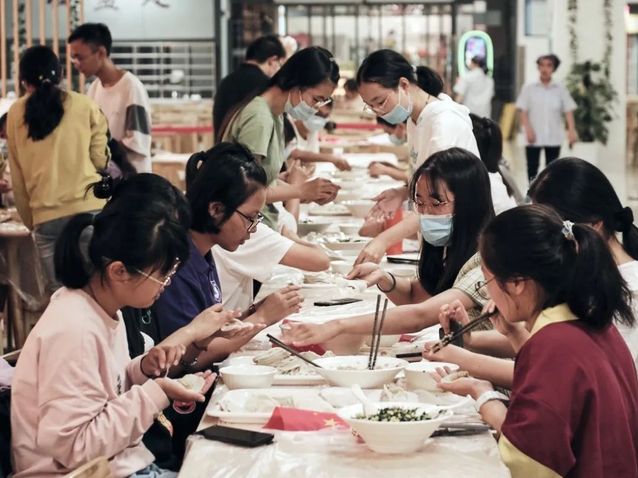 随着老师和同学们的到来,大联欢的第一环节包饺子活动正式开始。大家热情高涨,手指翻飞,一个个造型各异的饺子迅速出炉。片刻过后,热腾腾的饺子就呈现在眼前。大家迫不及待地开始品尝自己的劳动成果,可谓是“擀出情谊,包出团结,吃出乐趣”。