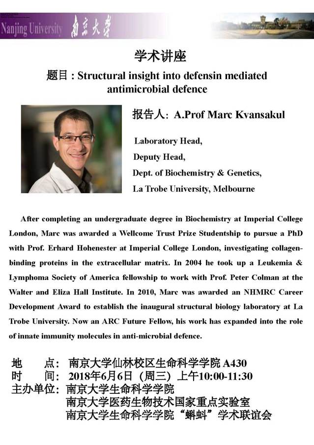 学术报告(6月6日):Structural insight into defensin mediated antimicrobial defence