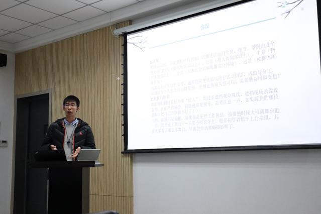 最后,由宋霄涵同学为大家进行摄影内训。宋霄涵依托丰富的经验,以自己的原创摄影作品为例,从“了解你的相机”、“需要掌握的基础参数和知识”、“常见的摄影情景”以及“摄影时与后期”四个方面为同学们详细讲解了摄影的技巧和注意事项,思路清晰、干货满满,与会同学们收获颇丰。