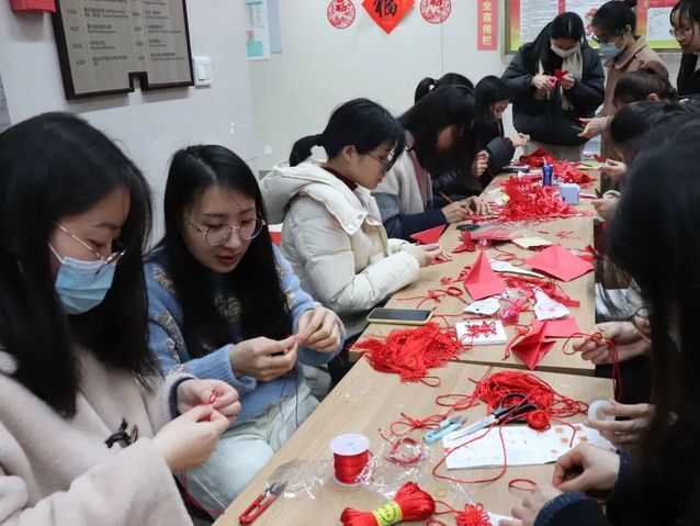 精美细致的中国结、手绳配上寓意吉祥的铜钱和串珠也同样让人心动。老师同学们纷纷采取行动,学习,创作,交流,忙得不亦乐乎。对于自己编织出的艺术品,倪雪同学表示,过节送礼非常拿得出手,自己日常佩戴也非常合适。祈福树上许愿牌,祈福树旁我和你。公司的“网红”许愿树上承载了师生们最美好的心愿,有“国泰民安”“希望疫情早日过去”“顺顺利利毕业”等等。愿大家的小小愿望能在春天生根发芽,开出美丽的花。