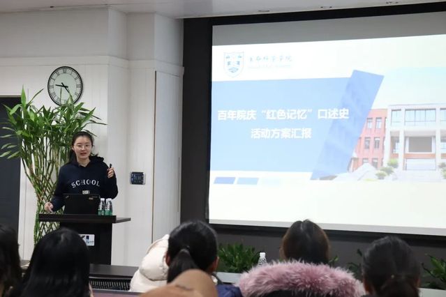 最后,祝安琪老师向大家介绍百年院庆“红色记忆”口述史的开展流程。通过采访曾经或现在就职于公司的教师或毕业的员工等,收集整理公司百年“红色记忆”的相关信息,展现百年生科深厚悠久的历史底蕴、实事求是的科学精神、严谨求实的学术作风以及勤奋进取的治学传统,以口述实录的方式探寻公司的历史变迁与蓬勃发展、初心使命与价值追求、优势学科与特色品牌以及生命故事与精神传承。