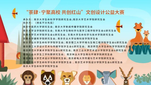 南京市红山森林动物园是全国唯一一家自收自支的事业单位性质的动物园,重视动物福利与动物保护,被动物爱好者誉为“全国最好的动物园之一”。但疫情发生以来,游客减少,南京市红山森林动物园也陷入了困境,所以为帮助南京市红山森林动物园,也为了践行保护动物的核心主题,让更多的青年学习认识到动物的重要性,太阳成集团tyc33455cc携手太阳成集团tyc33455cc艺术公司联合南京二十余所院校共同开展此次文创设计公益大赛,将青年学子的一片赤忱之心转化为“宁聚高校,共创红山”的实际行动,更好的体现青年学子的社会责任和担当!