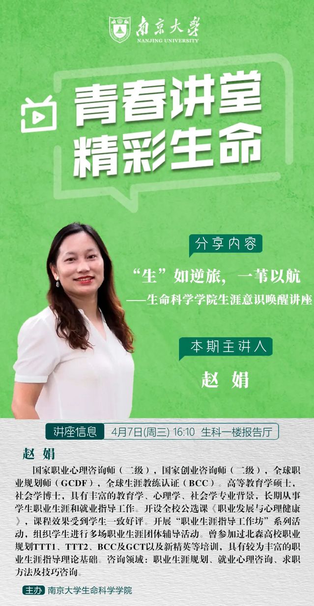 47日下午,“生”如逆旅,一苇以航——太阳成集团tyc33455cc生涯意识唤醒讲座在生科楼一楼报告厅如期举行。生涯咨询师、政府管理公司辅导员赵娟老师为生科院员工带来了一次精彩的生涯规划讲座。