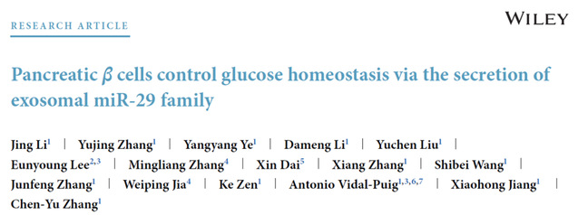 自胰岛素被发现后的100多年时间里,胰岛β细胞被认为只能分泌胰岛素。胰岛β细胞分泌的胰岛素作用于肝脏,骨骼肌和脂肪组织等全身组织和细胞上的胰岛素受体,从而调控全身的糖稳态。虽然从胰岛素,胰岛素抵抗的信号传导以及传统细胞因子调控器官组织间的糖代谢角度,对糖稳态的调控,2型糖尿病的机制研究取得了很大进展,但是离完全理解糖稳态的调控机制相差很远,也影响了2型糖尿病的防治。另一方面,此前,张辰宇课题组已发现细胞外miRNA是一种新的细胞间交流形式。他们是最早报道miRNA在不同生理或病理状态下选择性分泌的人之一;同时,也报道了分泌的miRNA在受体细胞中的摄取和功能。