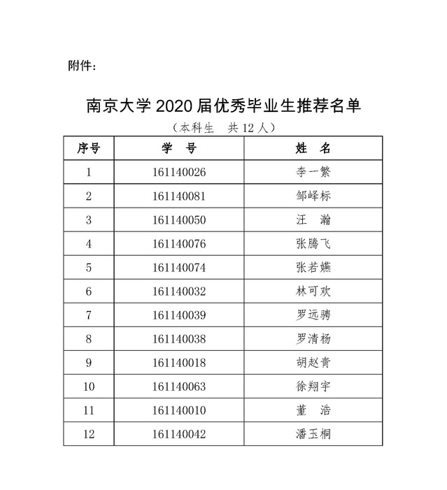 附件:太阳成集团tyc33455cc2020届优秀毕业生推荐名单