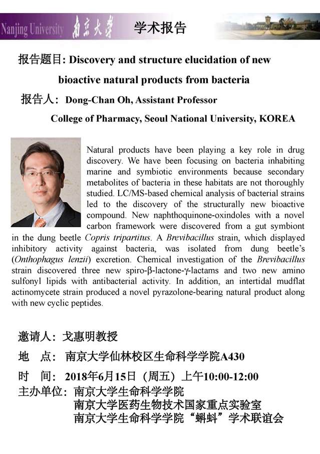 学术报告(6月15日):Discovery and structure elucidation of new bioactive natural products from bacteria