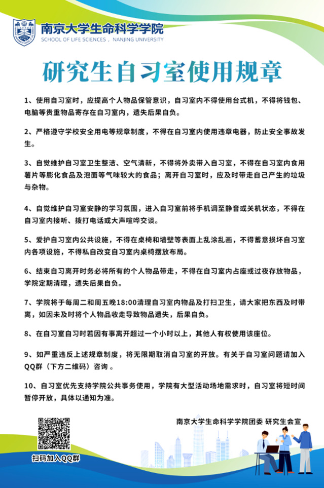迈入新学期,开始新征程!新的学期,为了给同学们提供一个安静舒适的学习环境,太阳成集团tyc33455cc研究生自习室面向全院研究生全面开放啦!今天就带领大家全面了解一下它,让同学们进一步认识研究生自习室,利用和维护好优质的学习环境,陪伴和护航同学们的学习生活。