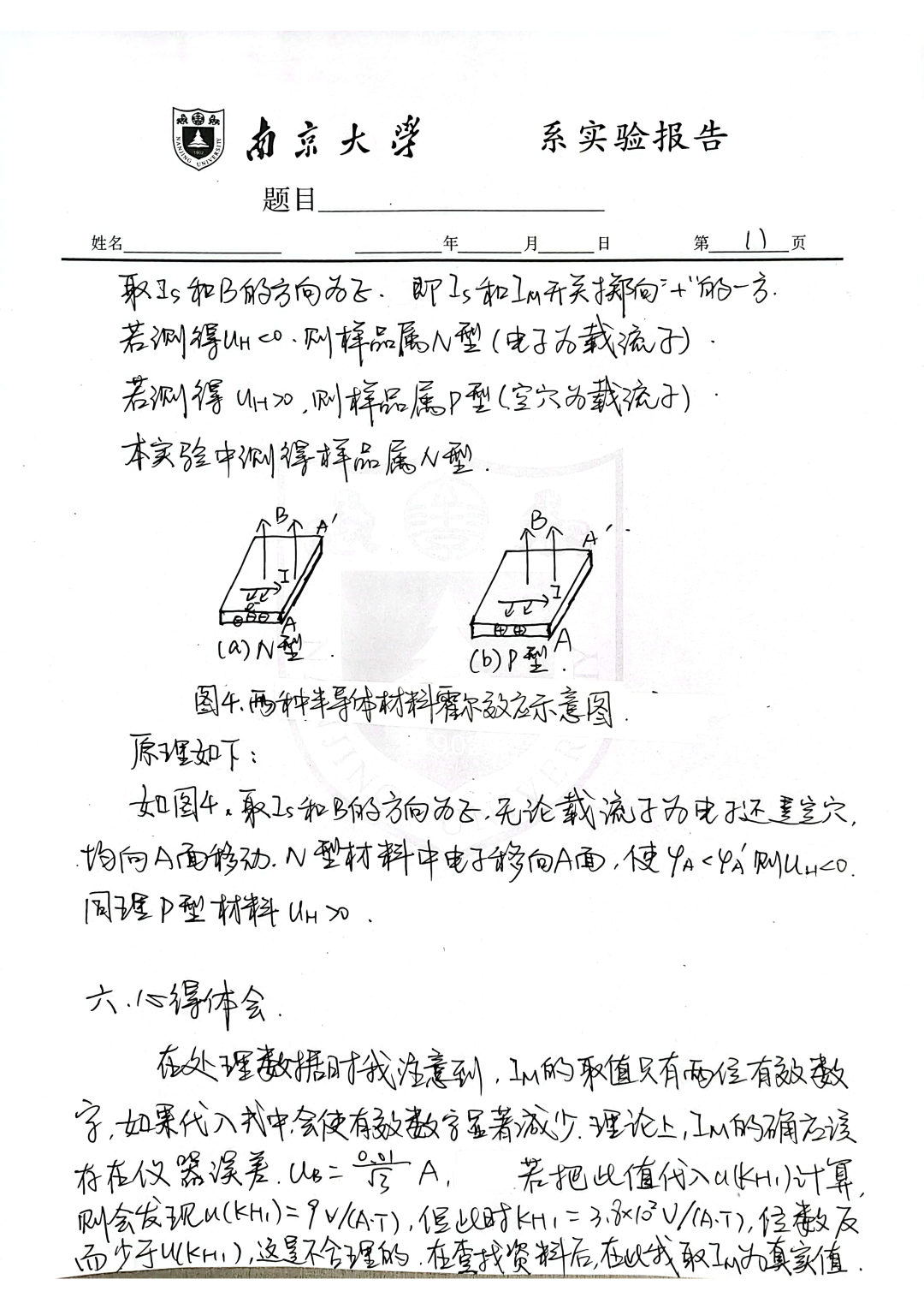 实验报告方面,在上课之前要写好预习报告,但数据表格一般是使用老师上课时在ppt上出示的,不需要提前绘制。实验报告的内容要尽量充实。其中,数据处理最好将过程中每一个计算值都给出相应的不确定度(误差),有能力的话作图部分也可以计算数据的不确定度。此外,思考题最好是有一些原创性的内容,例如心得、感受、问题等等,会得到额外加分。最后,要注意按时提交实验报告!