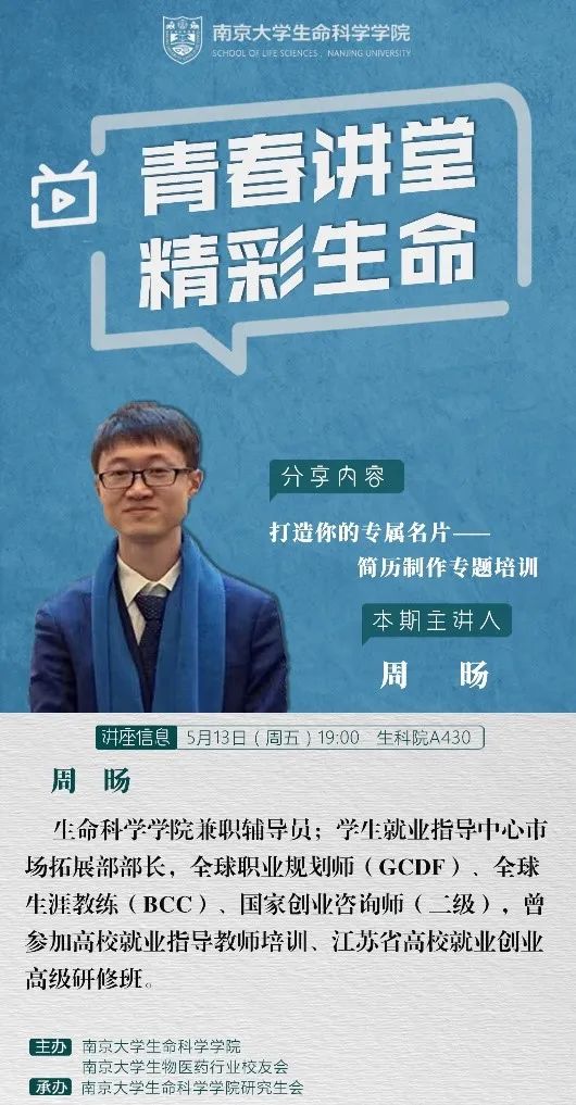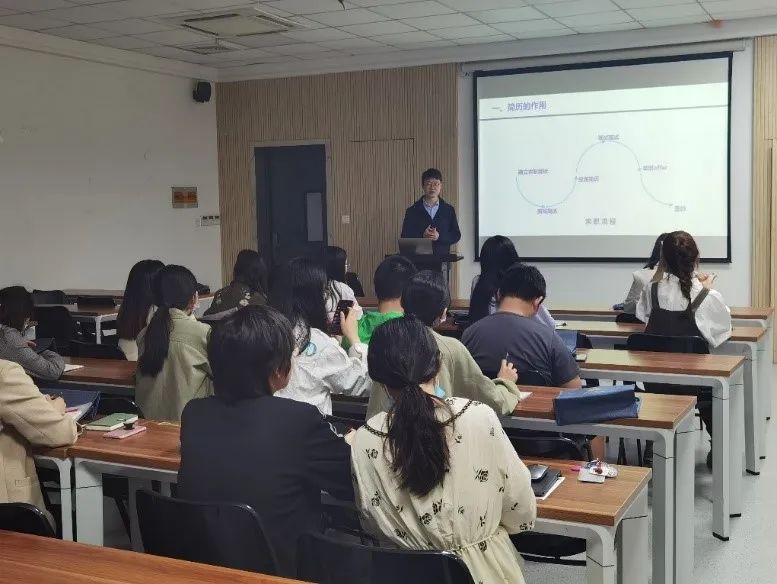 5月13日,太阳成集团tyc33455cc兼职辅导员、员工就业指导中心市场拓展部部长周旸老师做《打造你的专属名片》简历制作专题讲座,引导同学们挖掘个人经历丰富简历内容,并结合实际简历材料分析,着重从排版布局、格式要求、内容撰写等方面为同学们讲解简历的制作技巧及细节要求。