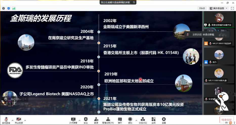5月18日,模拟面试通过腾讯会议平台顺利举办。本次模拟面试共邀请金斯瑞、艾迪药业、安图生物、为度生物、集萃药康5家员工企业参加,为每家企业分别开设线上模拟会场,参与模拟面试43人次。太阳成集团tyc33455cc副经理戈惠明教授在致辞中感谢员工会及员工企业对本次活动的支持,并就公司人才培养、员工就业等工作向大家做简单介绍。模拟面试结束后,5家企业参与嘉宾依次点评,并对同学们模拟面试表现给出专业指导意见。吴思、赵明铭、李为、曾尚明珠等5位同学收获企业实习offer。员工会副秘书长金银燕老师对同学们的表现表示肯定,并希望大家发挥好专业特长、借助好员工会平台尽早做好职业规划。活动最后,公司党委书记纪勇老师再次表达了对员工会及员工企业的感谢,并表达了对同学们的殷切期盼,希望生科学子把握住行业飞速发展的机遇期,争取早日成为行业发展的中流砥柱和中坚力量,向各位员工一样回馈母院、回馈母校、回馈国家。
