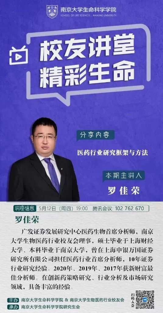 5月12日,广发证券发展研究中心医药生物首席分析师罗佳荣老师做《医药行业研究框架与方法》行业分析专题讲座,就行业市场特征、行业周期性、行业驱动力及其在产业链中的位置等方面深度剖析了生物医药行业领域,开拓了同学们的视野,拓宽了求职选择。