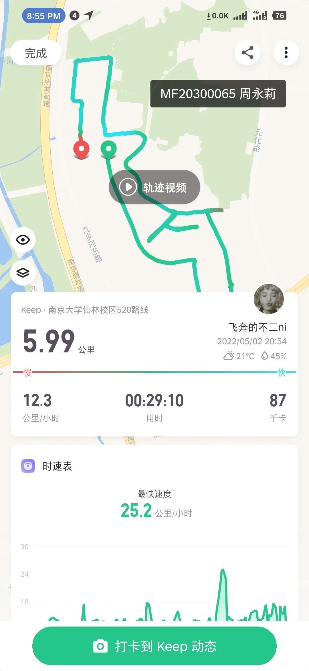 早睡早起打卡:宋雨晨 骑行打卡:王开智