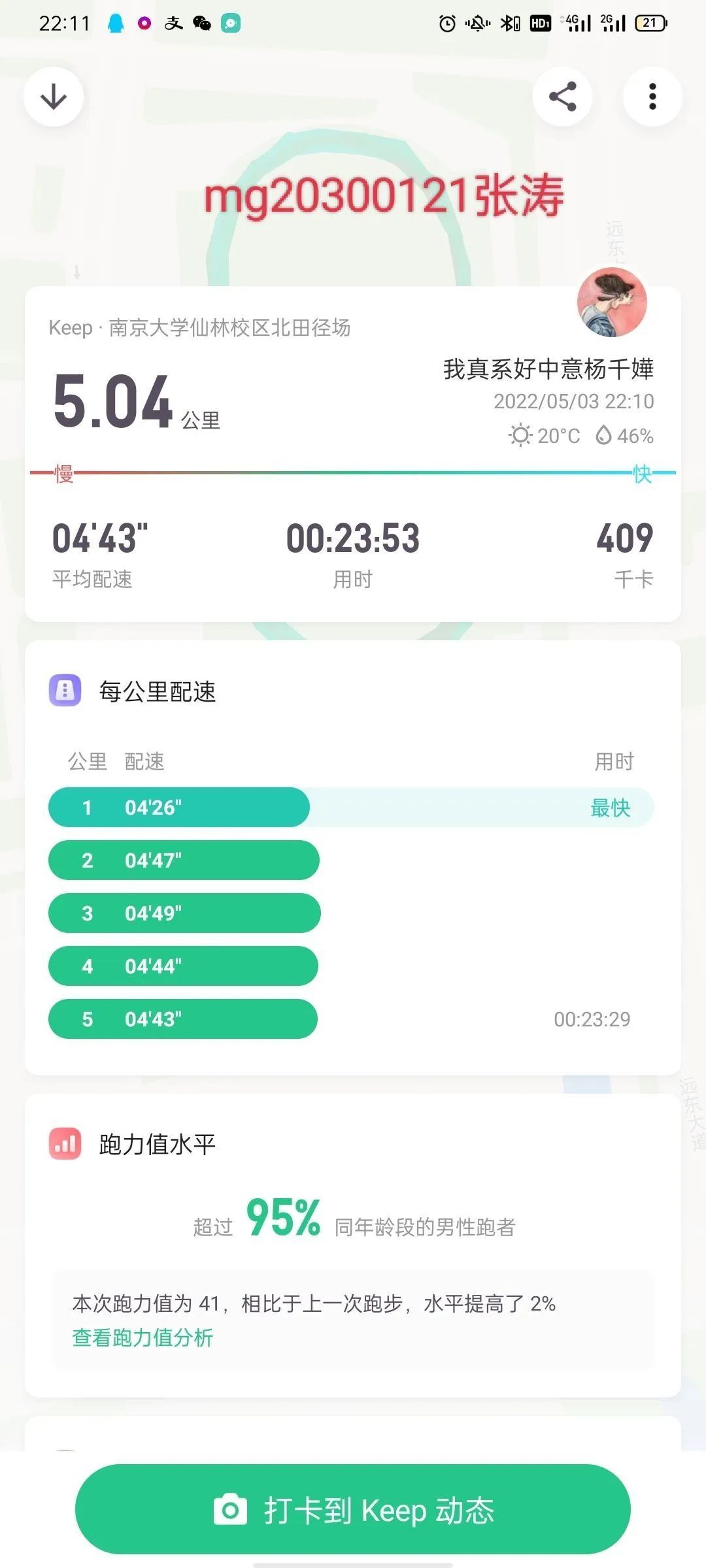 跑步打卡:赵贤森 电影打卡:潘雨晗
