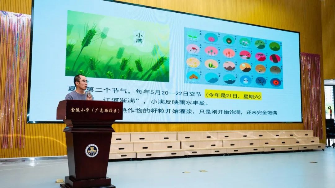 随后,习老师带领金陵小学的员工们一同走进了二十四节气科普的讲堂。习老师告诉大家,二十四节气,反映了自然节律变化,是中华民族悠久历史文化的重要组成部分。他带领员工们了解学习了与节气有关的天文、气象、物候、农事、民俗等知识,让孩子们感受大自然的魅力,加深了孩子们对我国传统文化的认识。