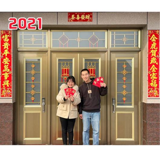接着,江豪杰同学为我们分享了每年过年期间和姐姐春联下的合照,门上的对联由传统的毛笔字,逐渐变为华丽的烫金,对联下的人也由孩童模样,变为青年,时代在变迁,人们的生活也日新月异。
