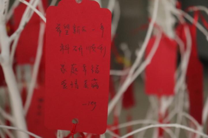 春节是时令的分界,也是希望的起点。活动的最后,老师和同学们在祈福卡上写下自己2023年的心愿,挂在了祈福树上。希望老师和同学们在新的一年里,万事胜意,从容面对学业以及工作中的“苦”与“甜”,在祈岁纳福中感悟春节的力量,在万象更新中积蓄奋力向前的信心。