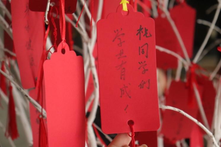 春节是时令的分界,也是希望的起点。活动的最后,老师和同学们在祈福卡写下自己2023年的心愿,挂在祈福树上。希望老师和同学们在新的一年里,万事胜意,从容面对学业以及工作中的“苦”与“甜”,在祈岁纳福中感悟春节的力量,在万象更新中积蓄奋力向前的信心。