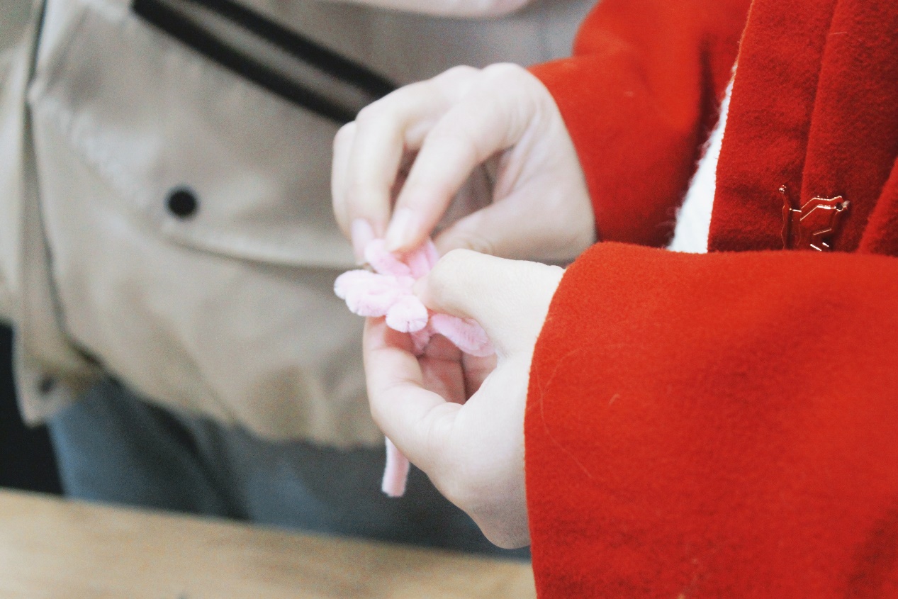 与墨香古韵相映成趣的,是充满奇思妙想的扭扭棒手工制作区。在这里,五彩的扭扭棒在师生们的指尖“跳舞”,变化出一朵朵绽放的小雏菊。大家一边制作,一边交流心得,欢声笑语回荡在每一个角落,手中的扭扭棒不仅编织出了创意作品,更编织出了浓浓的情谊与欢乐。
