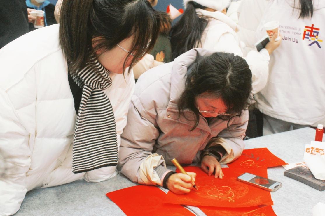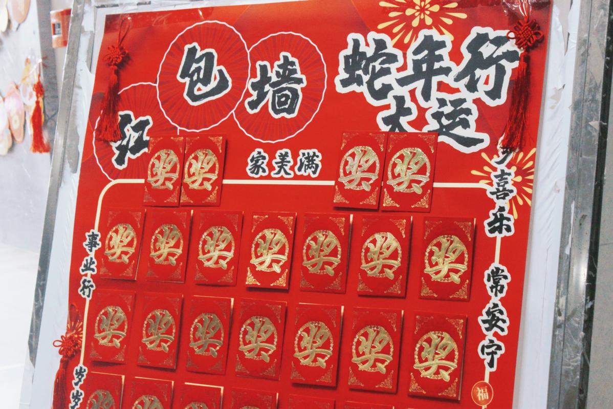 写春联、做手工给大家带来浓浓的文化韵味与创作乐趣,抽红包环节更将现场气氛推向了高潮。红包墙前,一个个鲜艳喜庆的红包如同熟透的果实,等待着师生们摘取。大家怀揣着激动与期待,有序排队抽奖。精美的卡套和雏菊小花,现金红包和真挚的新年祝福,每一次开奖,都伴随着一阵欢笑,现场的热情如同燃烧的火焰,驱散了冬日的严寒。