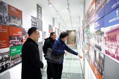 会后,韩教授在纪书记和张经理的陪同下参观了公司的院史墙和由历届毕业生合照组成的时光隧道。