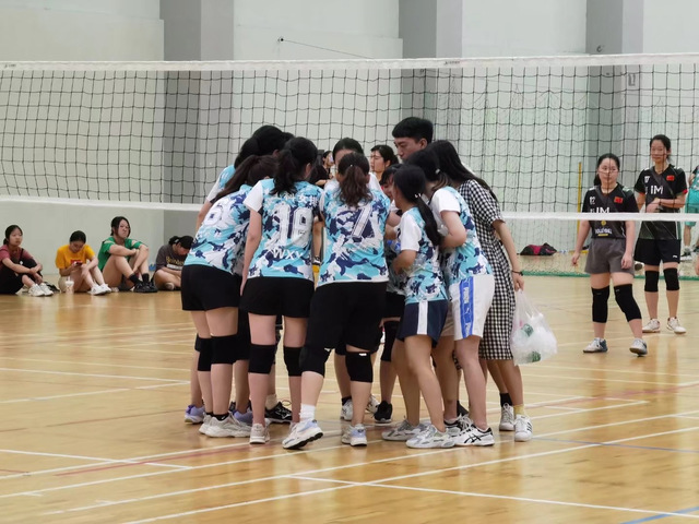 生科女排队员在比赛中加油打气