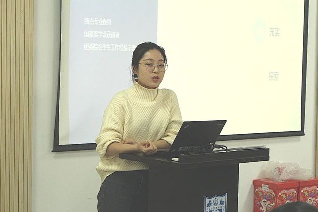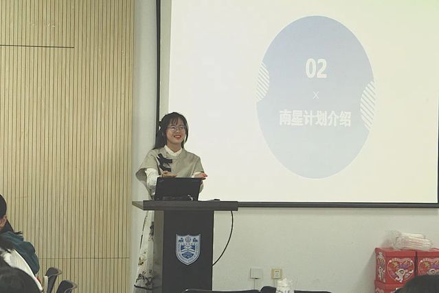 接下来,主持人钱婧结合自身经历,针对南星计划进行了细致的讲解,鼓励新生参与到招生活动中,为来年的南大带来更多浙江“生力军”。而后,她以一个南大“过来人”的身份,就南大学习、生活的方方面面分享了自己的体会:如何找到心仪的自习地点?南大的食堂如何pick?猫猫都有哪些小脾气?她的生动讲述深深地吸引了大家。连连笑声中,见面会的氛围越发火热起来。