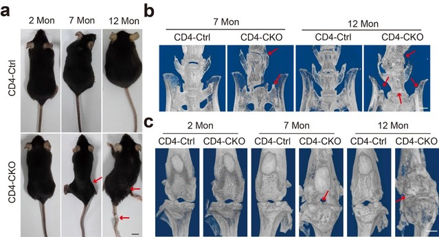 CD4-Cre;SHP2f/f小鼠自发骨病变症状
