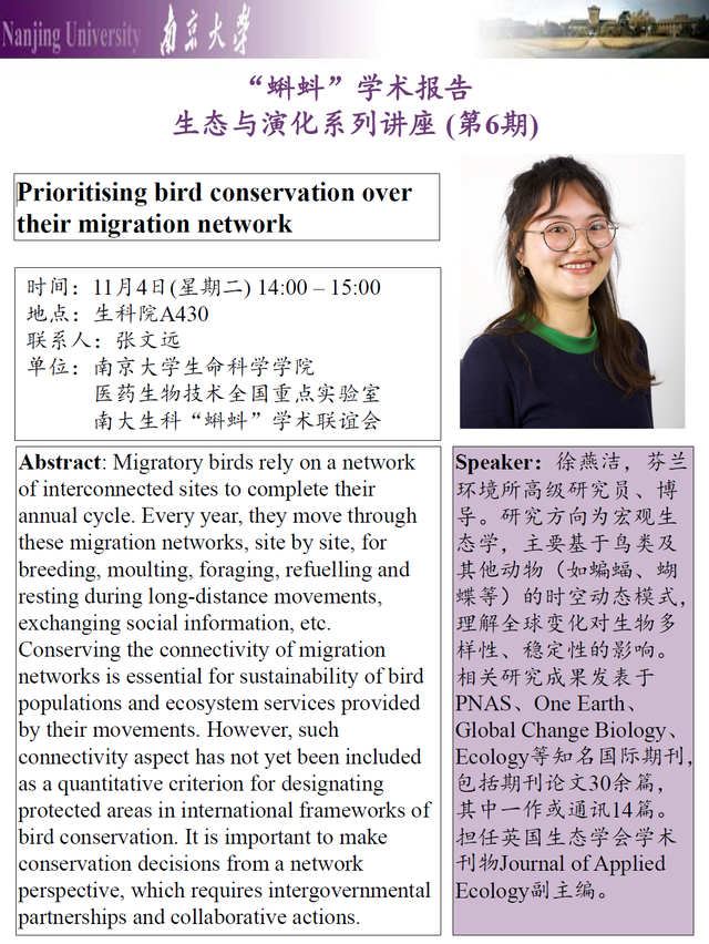 "蝌蚪”学术讲座:Prioritising bird conservation over their migration network