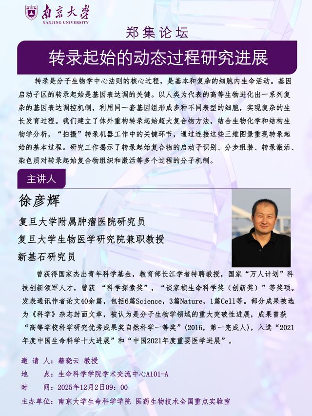 郑集论坛:转录起始的动态过程研究进展