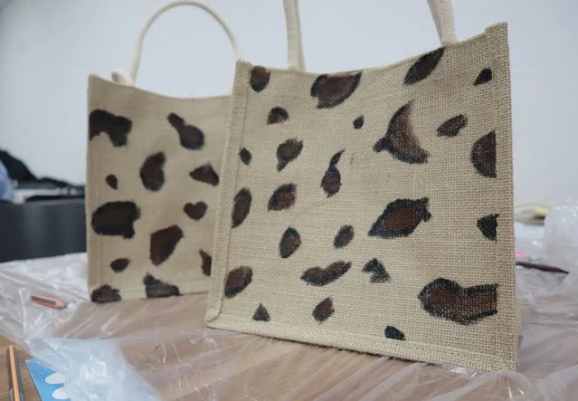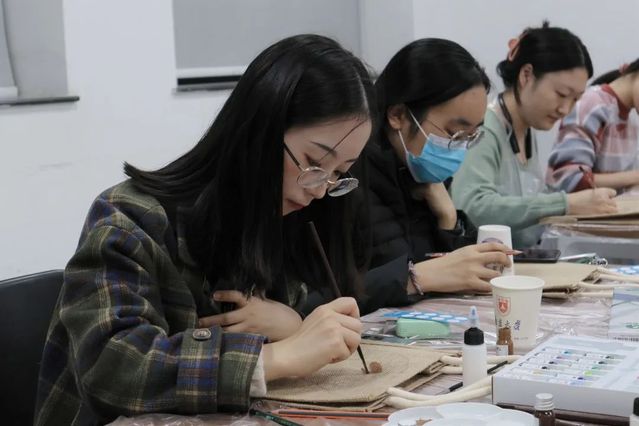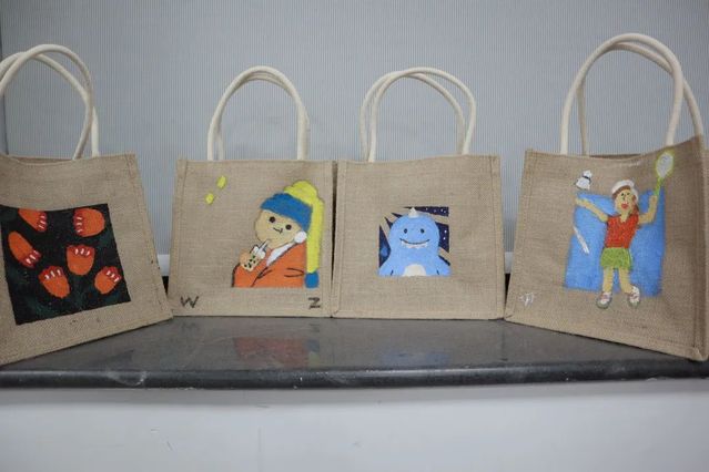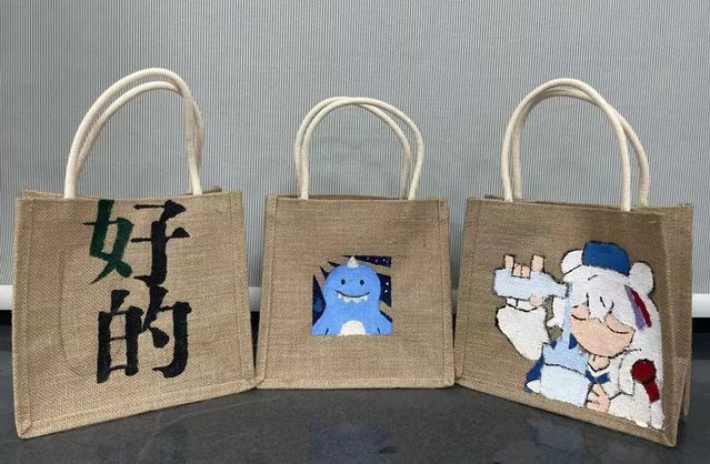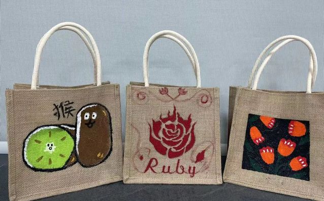 介绍完画材的基本使用方法后,陈老师又分享了两个提前绘制好的麻袋包,带给了同学们不同的创作思路与灵感,随后大家一起进入了创作体验环节。