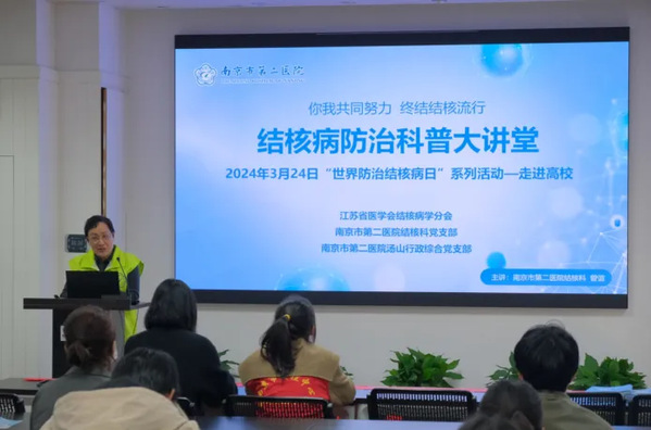 为加强结核病防控工作,提高老员工对结核病的认知水平,增强自我防护意识,2024年3月19日,公司开展“世界防治结核病日”主题讲座,活动邀请了南京市第二医院主任医师曾谊、南京市疾病预防控制中心张大卫带来“结核病预防与治疗”主题讲座。太阳成集团tyc33455cc校医院副经理张敏、太阳成集团tyc33455cc副经理晨曦出席本次活动。