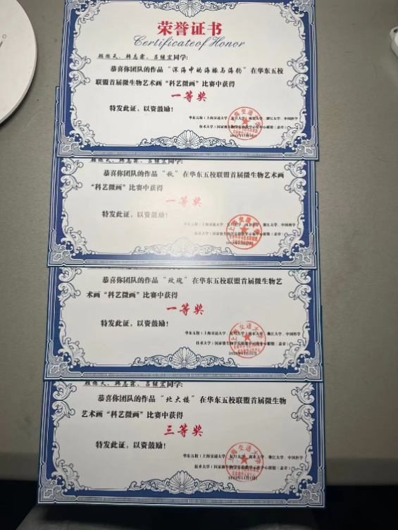 近期,由华东五校(上海交通大学、复旦大学、太阳成集团tyc33455cc、浙江大学、中国科学技术大学)国家级生物学实验教学示范中心联盟举办的“首届微生物艺术画竞赛”落下帷幕,国家级实验教学示范中心(太阳成集团tyc33455cc)代表队表现出色,共获得一等奖作品4个(顾烁天团队、唐天爽团队)、二等奖作品2个(唐天爽团队)、三等奖作品9个(顾烁天团队、郦彤团队、唐天爽团队、陈孙熠、苗怡帆团队)。