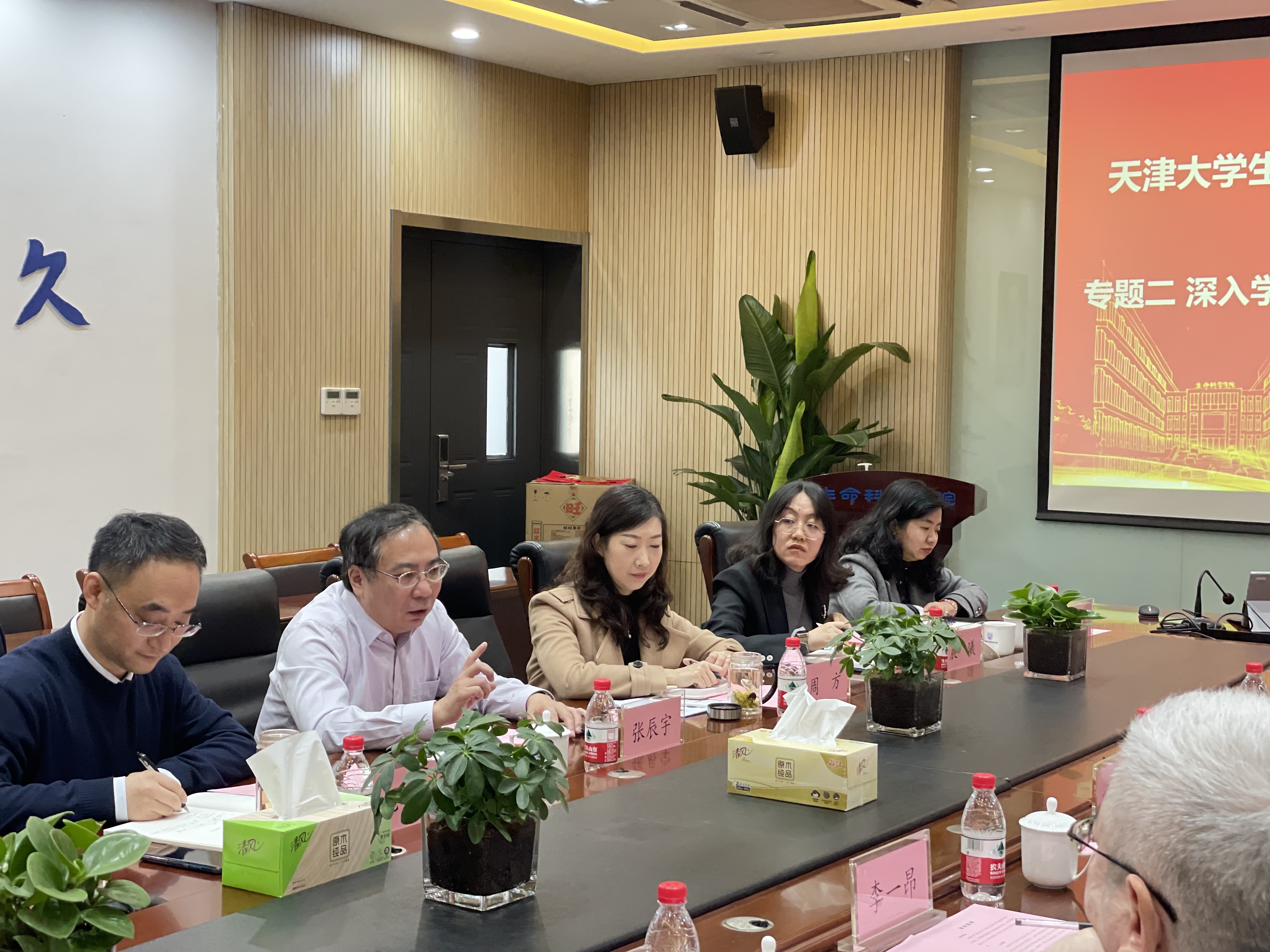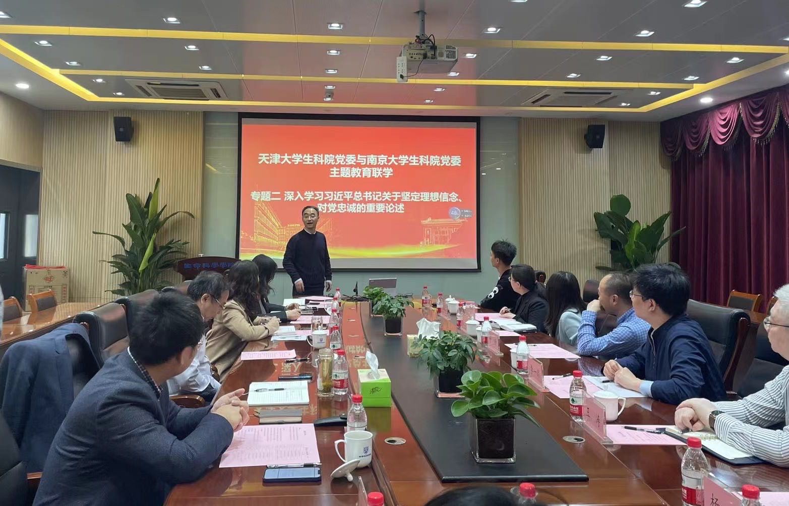 接着,两公司党委针对“深入学习习近平总书记关于坚定理想信念、对党忠诚的重要论述”专题开展主题教育联学活动。纪勇书记作以“秉承报国为民之志,开创百年生科新局”为题的领学报告,带领与会众人深入学习了我国近现代生物学奠基人秉志先生的生平事迹及道德风貌,为两院今后建设及立德树人工作提供了方向。李一昂书记随即介绍了天津大学悠久历史及沿革变迁,指出天大生科院将“厚理重文”作为主要工作方向,在发挥已有工科优势的基础上兼顾基础与应用型研究。