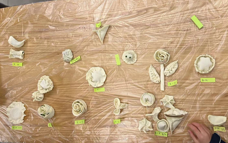 活动一开始,同学们就迫不及待得落座,将热情融入到包饺子中,一边和三五好友闲聊,一边手指飞速地捏动着饺子皮,不一会一盘盘各式各样的饺子就包好了。之前没有包过饺子的同学也在身边同学的指导下逐渐掌握技巧,也包出了精美的饺子。