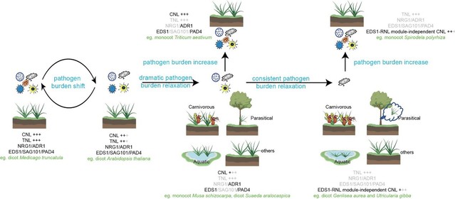 图1 NLR受体和信号组分在植物生态适应下的协同演化示意图